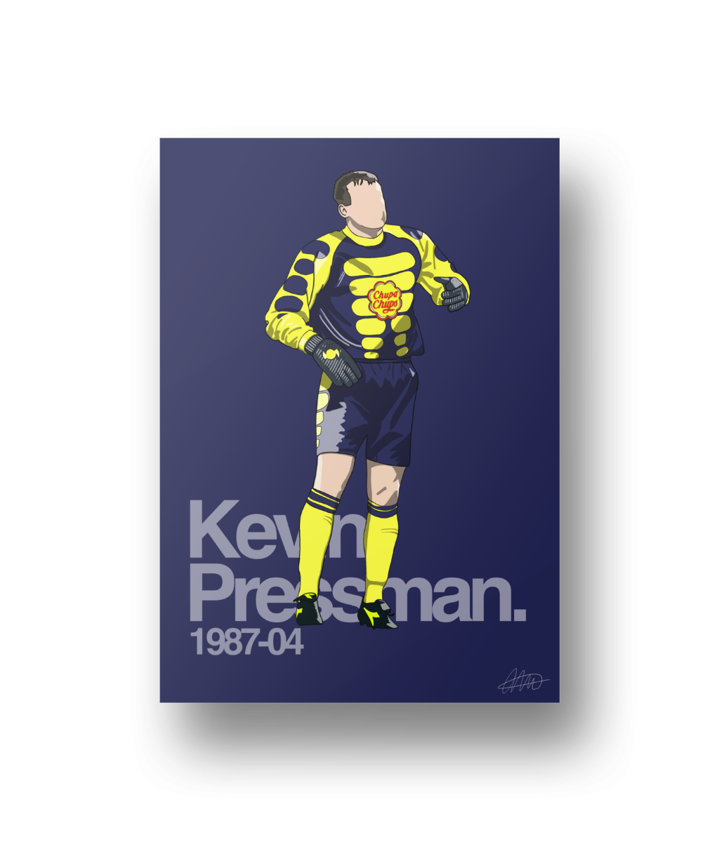 The Kevin Pressman Legend-Print is the perfect way to honour the great goalkeeper's career. Printed on 170gsm paper, this print shines with vibrant colours and incredible clarity. Celebrate Kevin Pressman with a timeless and beautiful print.
