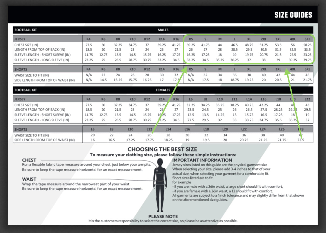 XS 39.25 / S 41.75 / M 44 / L 46.5 / XL 48.75 / 2XL 51.25 / 2XL 51.25 / 3XL 53.5